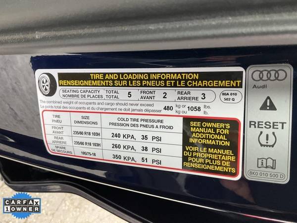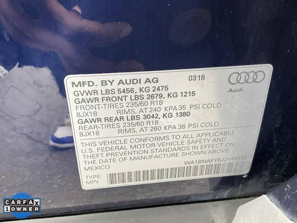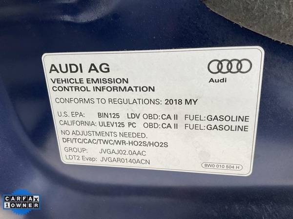 **CARFAX ONE OWNER** Quattro Premium Plus, Leather, Panoramic Moonroof, Navigation, Rear View Back Up Camera, Power Tailgate, Bluetooth, AUX/USB, Super Clean Vehicle, Drives Excellent.All advertised prices exclude government fees and taxes, any finance charges, any dealer document preparation charge, and any emission testing charge. While we try to make sure that all prices posted here are accurate at all times, we cannot be responsible for typographical and other errors that may appear on the site. We make every effort to provide you the most accurate, up-to-the-minute information; however it is your responsibility to verify with the Dealer that all details listed are accurate. The dealership is not responsible for typographical, pricing, product information, advertising or shipping errors. Advertised prices and available quantities are subject to change without notice. All rates and offers are dependent on bank approval, which varies based on applicant's credit as well as the vehicle.