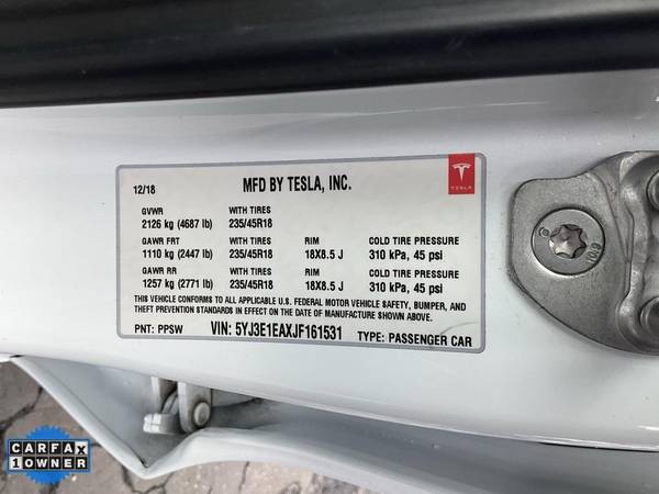 **CARFAX ONE OWNER** Super Nice with Base Autopilot, Drives Excellent, Balance of Powertrain Warranty.All advertised prices exclude government fees and taxes, any finance charges, any dealer document preparation charge, and any emission testing charge. While we try to make sure that all prices posted here are accurate at all times, we cannot be responsible for typographical and other errors that may appear on the site. We make every effort to provide you the most accurate, up-to-the-minute information; however it is your responsibility to verify with the Dealer that all details listed are accurate. The dealership is not responsible for typographical, pricing, product information, advertising or shipping errors. Advertised prices and available quantities are subject to change without notice. All rates and offers are dependent on bank approval, which varies based on applicant's credit as well as the vehicle.