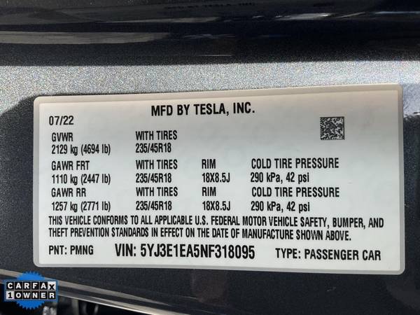 VIN: 5YJ3E1EA5NF318095
