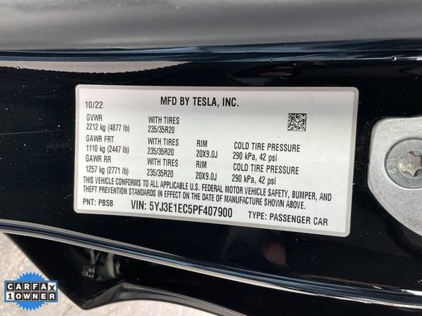 VIN: 5YJ3E1EC5PF407900