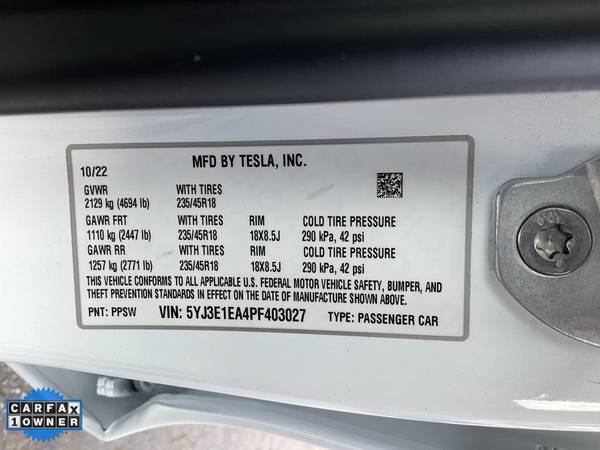 **CARFAX ONE OWNER** Super Nice and Clean, Base Autopilot, Balance of Full Factory Warranty Remaining.All advertised prices exclude government fees and taxes, any finance charges, any dealer document preparation charge, and any emission testing charge. While we try to make sure that all prices posted here are accurate at all times, we cannot be responsible for typographical and other errors that may appear on the site. We make every effort to provide you the most accurate, up-to-the-minute information; however it is your responsibility to verify with the Dealer that all details listed are accurate. The dealership is not responsible for typographical, pricing, product information, advertising or shipping errors. Advertised prices and available quantities are subject to change without notice. All rates and offers are dependent on bank approval, which varies based on applicant's credit as well as the vehicle.