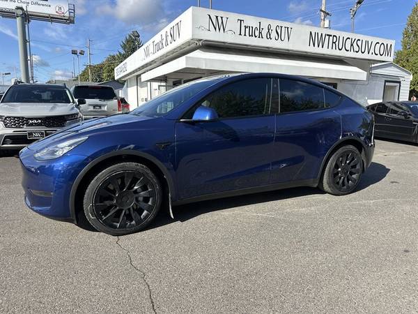 Blue 2022 Tesla Model Y Long Range AWD 1-Speed Automatic Electric Motor Backup Camera, Apple Car Play/Android Auto, Adaptive Cruise Control, Blind Spot Monitors, Bluetooth, Cooled Seats, Heated Seats, In Vehicle Wi-Fi Hotspot, Keyless Access w/Push Button Start, Navigation, Touch Screen Controls, CARFAX BUYBACK GUARANTEE, 14 Speakers, 4-Wheel Disc Brakes, ABS brakes, Active Cruise Control, Air Conditioning, Audio memory, Automatic temperature control, Brake assist, Dual front impact airbags, Dual front side impact airbags, Electronic Stability Control, Four wheel independent suspension, Front anti-roll bar, Front dual zone A/C, HVAC memory, Knee airbag, Lane Departure Warning System, Low tire pressure warning, Memory seat, Navigation System, Occupant sensing airbag, Overhead airbag, Power driver seat, Power Liftgate, Power steering, Power windows, Premium Audio System, Radio data system, Rear window defroster, Remote keyless entry, Speed control, Speed-sensing steering, Steering wheel memory, Steering wheel mounted A/C controls, Steering wheel mounted audio controls, Traction control.VISIT OUR WEBSITE FOR VEHICLE AVAILABILITY.Recent Arrival! Odometer is 7064 miles below market average! 127/117 City/Highway MPGNO SALES PRESSURE. WE ARE READY TO HELP! CALL (503) 344-6292 TO SPEAK WITH A TEAM MEMBER!!