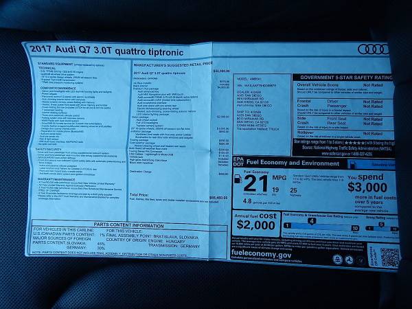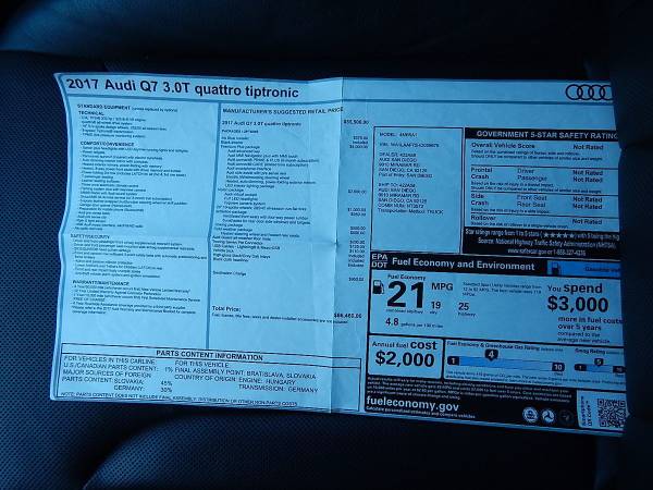 Disclaimer: While every reasonable effort is made to ensure the accuracy of the information for this Audi Q7, we are not responsible for any errors or omissions contained in this ad. Please verify any information in question with Hayward Motor Group at 510-998-0134