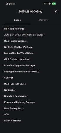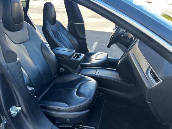 If ad is up it's available......For sale is super nice, 2015 Tesla Model S 90D with 100k miles. This one has the very RARE 3rd row jump seats, for up to 7 passenger seating. These seats are a $3000 option, fold into the rear floor and are removable too. This is a highly optioned car, with an MSRP of over $103k, see the window sticker and Tesla build page from my app. Stock with tinted windows and upgraded 21" alloys with ZR rated tires. This 90D has the desirable small rear drive unit that is not as prone to leaking as in the large P85D-P90D-P100D model drive units. Car floats down the road, 1 FOB, miles will increase slightly. All updates are current, full charge is around 250.