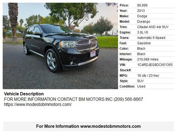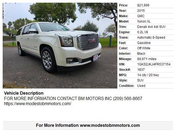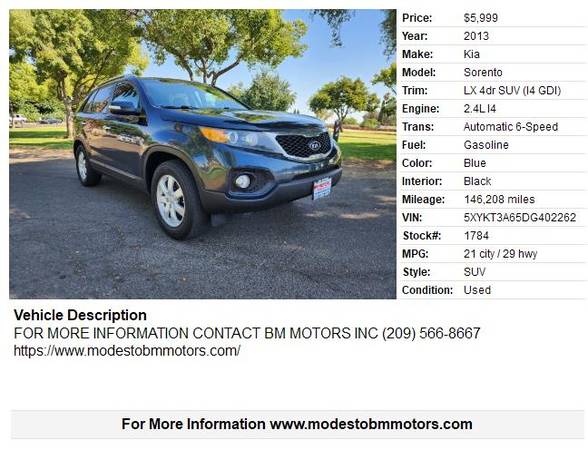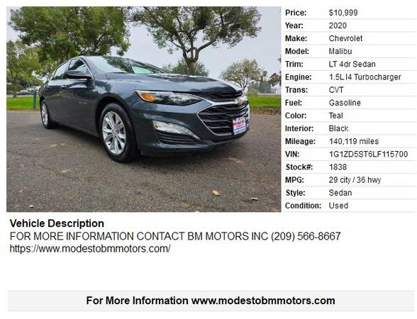 FOR MORE INFORMATION CONTACT BM MOTORS (209) 566-8667 www.ModestoBMMotors.com