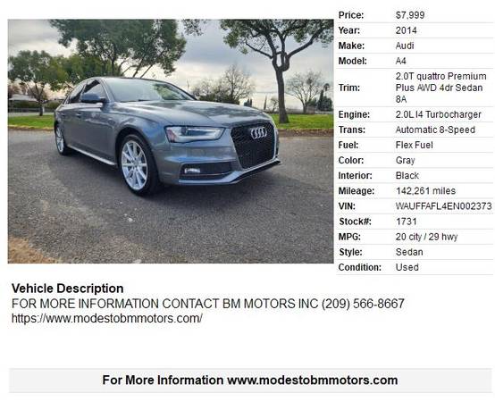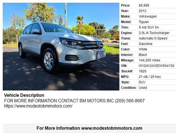 FOR MORE INFORMATION CONTACT BM MOTORS (209) 566-8667 www.ModestoBMMotors.com