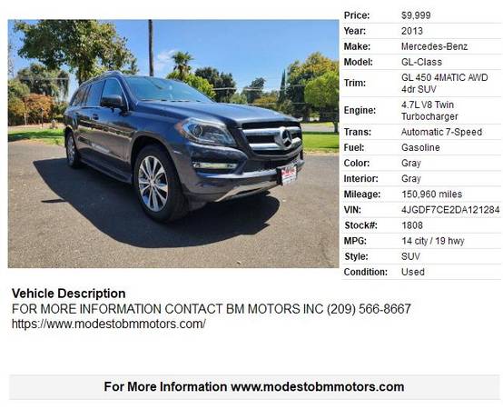 FOR MORE INFORMATION CONTACT BM MOTORS (209) 566-8667 www.ModestoBMMotors.com