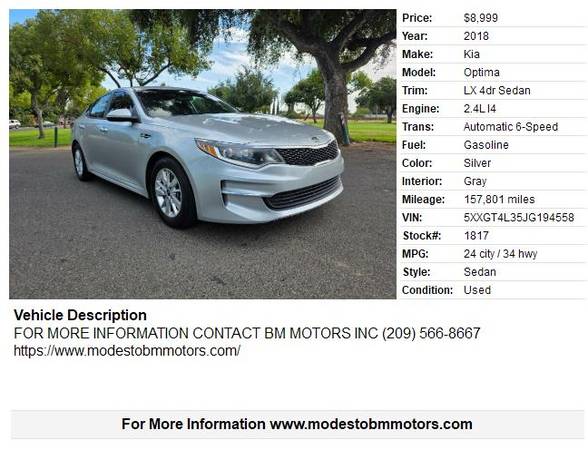 FOR MORE INFORMATION CONTACT BM MOTORS (209) 566-8667 www.ModestoBMMotors.com