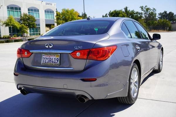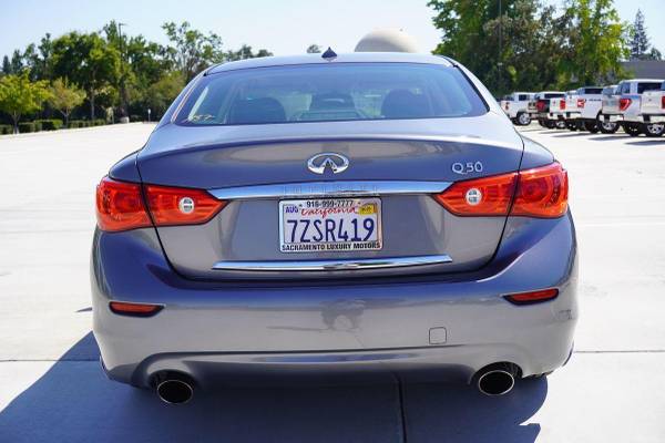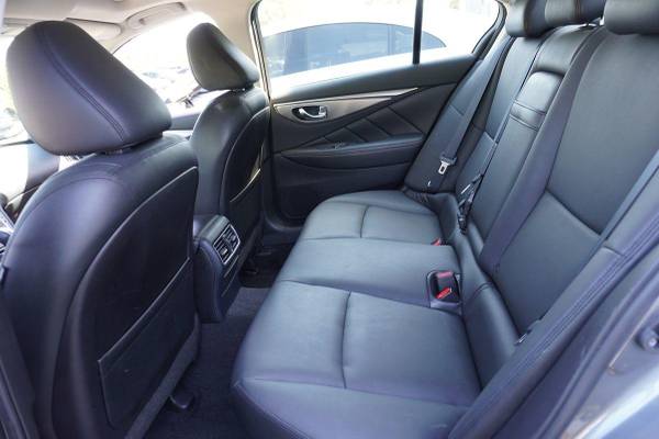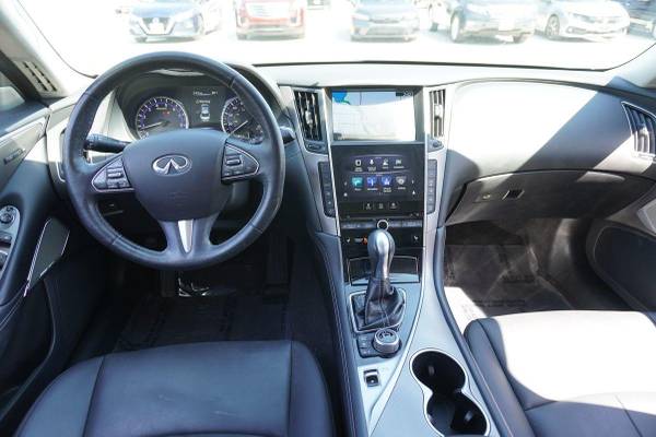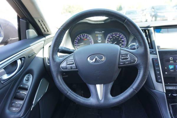 The 2017 INFINITI Q50 3.0t Premium RWD in Graphite Shadow is a blend of luxury and performance, exuding a sleek and sophisticated presence on the road. Its exterior is complemented by stylish [n10] illuminated kick plates and [b92] splash guards, enhancing both its aesthetic appeal and functionality. The 3.0L V6 engine powers this athletic sedan, delivering a lively driving experience that is sure to impress any enthusiast. Inside, the Graphite-colored interior embodies a sense of modern elegance and comfort, making every journey a pleasurable experience. Equipped with the [p03] 3.0t premium plus package, the Q50 boasts advanced features such as heated front seats and a dynamic navigation system, focusing on convenience and connectivity. With the [c03] 50 state emissions, this vehicle is designed to meet strict environmental standards across the United States. Additionally, the [s55] literature kit provides all necessary documentation and guides, ensuring you are fully prepared to enjoy everything this vehicle has to offer. Each element of the Q50 has been crafted with precision and attention to detail, making it a standout choice in the luxury sedan market. Whether cruising through city streets or embarking on a road trip, the INFINITI Q50 offers a refined driving experience with a touch of sportiness.All advertised prices exclude government fees and taxes, any finance charges, any dealer document preparation charges, and any emission testing charges. While we try to make sure that all prices posted here are accurate at all times, we cannot be responsible for typographical and other errors that may appear on the site. We make every effort to provide you with the most accurate, up-to-the-minute information; however, it is your responsibility to verify with the Dealer that all details listed are accurate. The dealership is not responsible for typographical, pricing, product information, advertising, or shipping errors. Advertised prices and available quantities are subject to change without notice. All rates and offers are dependent on bank approval, which varies based on the applicant's credit as well as the vehicle.
