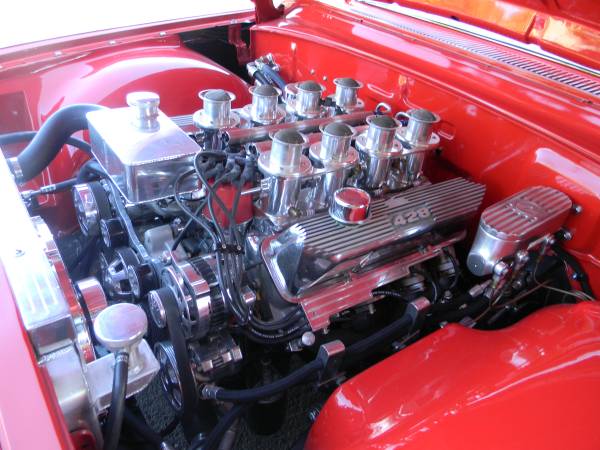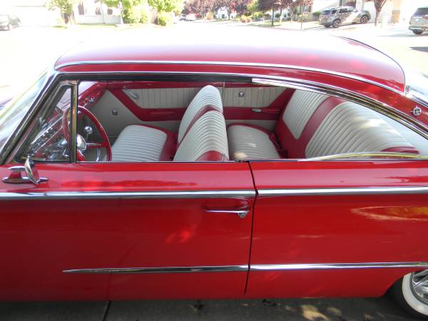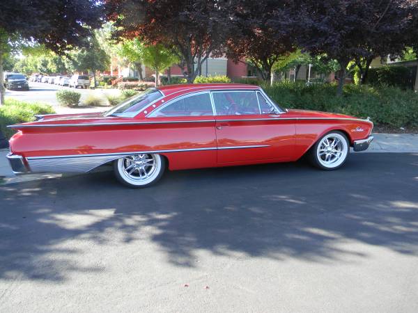 Offered for sale is this jaw dropping example of a 1960 Ford Starliner. This vehicle was given a complete nut and bolt restoration with no expense spared and all the attention to detail one could imagine. This Starliner runs and drives as well as it looks. The vehicle is powered by a 428 Cubic Inch V8 that started life as a 410C.I. FE motor. The 410C.I. motor was bored to 428C.I. The engine is equipped with roller rockers, roller cam, aluminum Edelbrock heads, Weldon Racing Fuel Pump, Sanderson headers, and has an eight stack Hilborn Electronic Fuel Injection system (all polished). This immaculate motor is mated to a Tremec 6-Speed manual transmission that glides through gears via a Lokar shifter. The power finds its way to the pavement through a positraction rear end equipped with 3.70 gears and 31 spline axles. All of that power can still be stopped easily through the Wilwood electronically assisted 4-Wheel disc brake system. This brake system works flawlessly and takes the updated DOT 5 brake fluid. The tires are NITO white wall tries wrapped around Billet Specialty wheels. Those tires are steered via a custom CON2R steering wheel that presents beautifully. Inside the cabin of the car you will be struck by the beauty of the interior. All high quality leather was used when doing the custom interior. You will also notice the Dakota Digital dash with Analog display, power windows, stereo system, USB port (for tuning) and more. The air conditioning on this car works flawlessly and blows ice cold! You will notice on both exterior and interior of the car how stunning the paint presents on this vehicle. The paint code is a true #FF2800 which is Ferrari Red. Offered today at $74,995, do not miss your opportunity to own this rare and one of a kind collectible beauty for a fraction of the cost to build it!