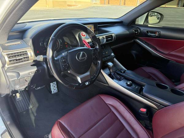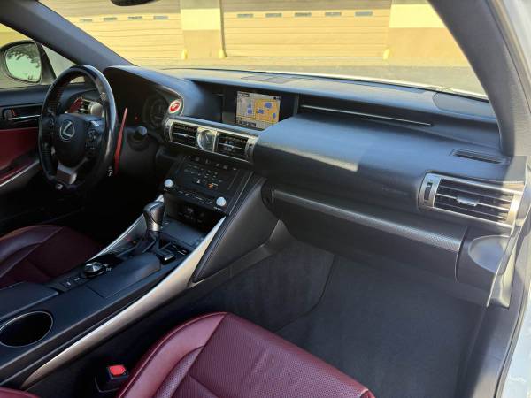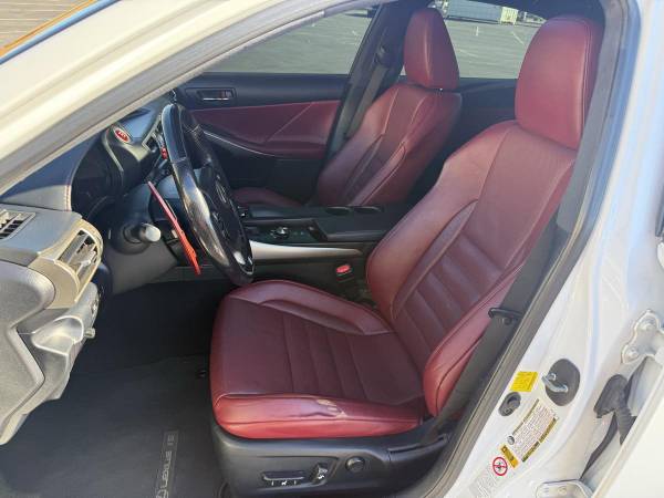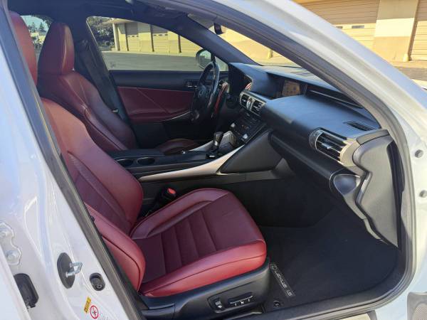 FEATURES: Sunroof, Rear Back Up Camera, Navigation, Heated Seats, Ventilated Seats, Adaptive Cruise Control, Pre-Collision Warning, Blind Spot Monitors with Cross Traffic Alert, Lane Change Assist, Mark Levinson Premium Audio System, Auto Dimming Rearview Mirror, Power Seats with Lumbar Support, Keyless Entry, Push Start, Heated & Power Mirrors, Daytime Running Lights.DESCRIPTION: 2016 Lexus IS350 F Sport in Ultra White for sale. Has only 86,000 miles no issues runs and drives great. Paint is in great shape, the red leather interior is clean with no stains or rips. This vehicle has never been exposed to smoking. 3.5L 6 Cylinder engine. Brakes and tires in great condition. All original parts never modified. Equipped with the Navigation package. This 2016 Lexus IS350 holds a salvage title due to an accident. No airbags deployed at the time of the accident. Documentation can be provided to show the extent of the damages as well as the CarFax. On the bright side, it has undergone a comprehensive inspection, and any necessary repairs have been made to bring it back to meet and exceed OEM specifications. No issues and ready to go to its new owner.