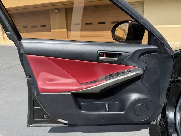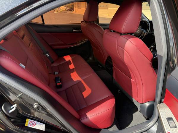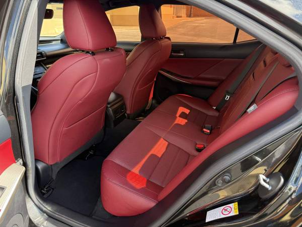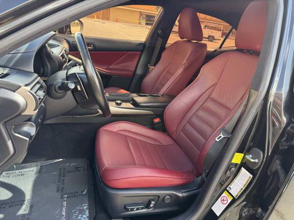 DESCRIPTION: 2017 Lexus IS200t F Sport in Caviar Black for sale. Has 93,000 miles. No issues runs and drives great. Paint is in amazing shape was just fully polished. The red leather interior is clean with no stains or rips. This vehicle has never been exposed to smoking. Brakes and tires in good condition. 2.0L 4 Cylinder Turbo engine gets 27 mpg. This 2017 Lexus IS200t holds a salvage title due a minor accident on the left side of the vehicle. No airbags deployed. Carfax can be provided to show the extent of the damages. On the bright side, it has undergone a comprehensive inspection, and any necessary repairs have been made to bring it back to meet and exceed OEM specifications. No issues and ready to go to its new owner.