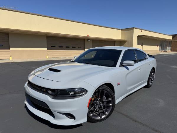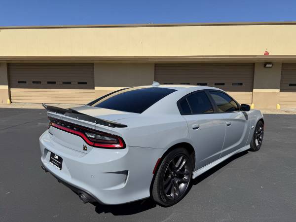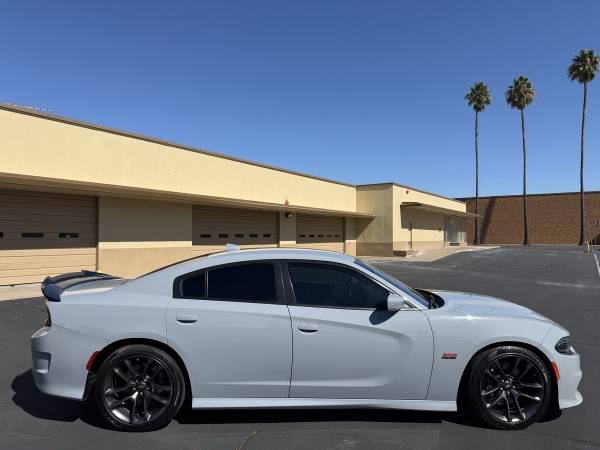 DESCRIPTION: 2022 Dodge Charger Scat Pack in Smoke Show Grey for sale. 52,000 miles on it. 6.4L V8 Engine pushing 485 horsepower. The vehicle runs and drives great. Paint is in great shape no dents or dings, black cloth interior is in excellent condition with no tears or stains. It has never been exposed to smoking. The all season tires and brakes in great shape. This 2022 Dodge Charger holds a salvage title due to minor suspension damage. The vehicle was not in an accident. Carfax can be provided to show the extent of the damages. On the bright side, it has undergone a comprehensive inspection, and any necessary repairs have been made to bring it back to meet and exceed OEM specifications. No issues and ready to go to it's new owner.