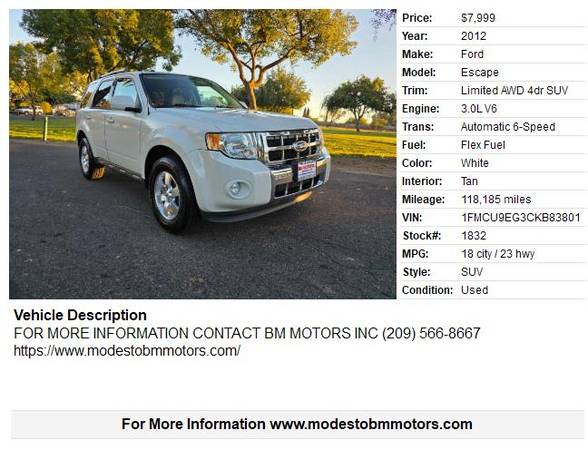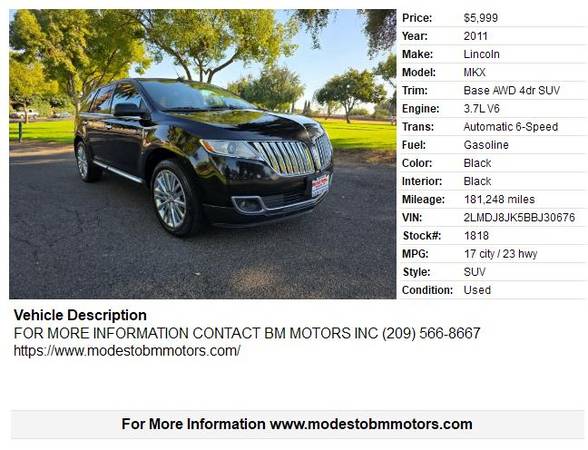 FOR MORE INFORMATION CONTACT BM MOTORS (209) 566-8667 www.ModestoBMMotors.com