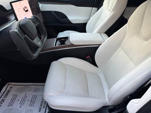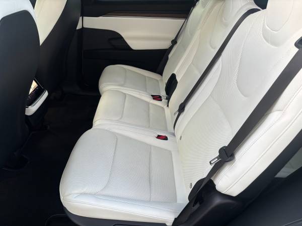 This 2022 Tesla Model X comes with 22'' Turbine Wheels ($5,500 upgrade), 7 Seats ($3,500 upgrade), Premium White Interior ($2,000 upgrade), and the Tow Package.
