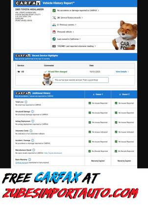 All services listed on our website with free Carfax showing 28 extensive service records by Toyota dealerships in CA