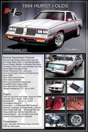 Very Rare, 1984 Hurst/Olds. They made 3500 H/O cars in '84, 2000 of them without T-Tops, and 1500 with T-Tops like mine has.