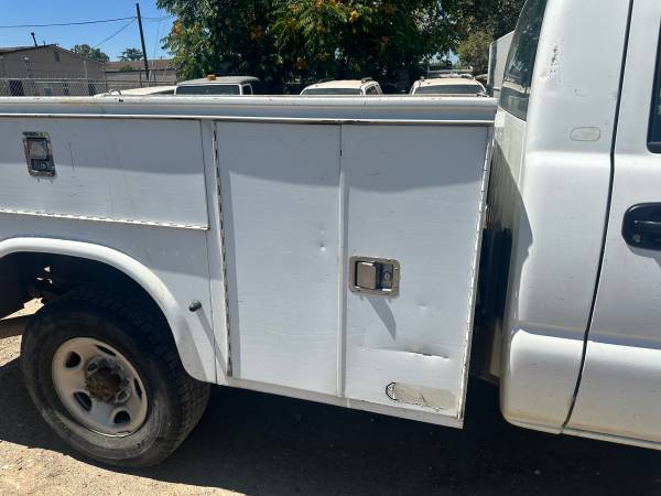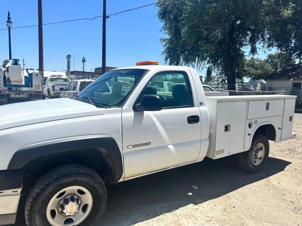 2003 Chevrolet Silverado 2500HD Utility Bed Service Truck 8 Cylinder Gas Automatic Transmission A/C With Utility Bed Truck TOW PACKAGE Body Work Truck Clean Title Well Maintained Runs Strong One Owner 107K Miles Previously Owned By City Fleet Vehicle Long Bed Tool Boxes 3/4 Ton Heavy Duty For More Info Call show contact info