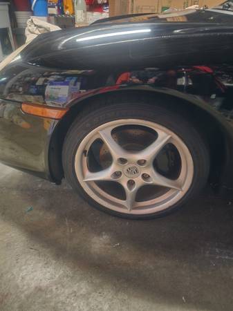 Since it is a high-mileage driver, do not expect a showroom floor model or even a garage queen beauty. There is clearcoat oxidation as well as some sun fade, front bumper paint is spider webbing, some minor door dings, a little curb rash. But it does look great from 10ft with a wash/wax. It is a sexy triple black, exterior paint, leather, alcantara headliner, has a sunroof and the lighter S model wheels, six speed manual transmission.