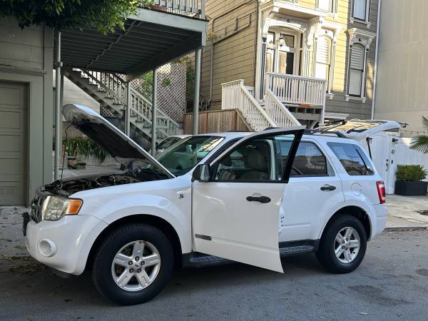 Hi there I woukd like to introduce my 2008 Ford Escape Hybrid 2.3L 4-cylinder to you all here’s everything I’d like to tell you all about it first off runs excellent with no mechanical issues everything has been all maintained On Time Over the years. vehicle is equipped with AM/FM, radio , leather chairs and lots of other options all amenities work as they should. Vehicle is very safe, very reliable, very dependable and gets good gas mileage in the city, especially with gas pricing. Get 35MPG Which is just wonderful in my perspective for a Smaler Suv. This would make a wonderful vehicle for someone out there for a great commuter, vehicle. Non-smoker has clean California title with current registration. Oil changes have been done every 3000 miles and tuneups as well. It has never skipped a beat on getting maintained I am looking for a serious inquiry. No time wasters please and read ad before contacting thank you all for selecting and reading.