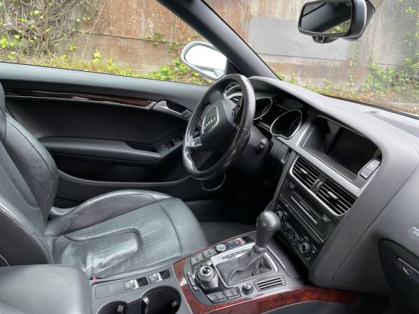 Audi A5 Cabriolet, lightly driven only 81,000 miles-- mainly highway driving from SF to Palo Alto. Condition excellent with lustrous paint, no dents, convertible top in great condition, no leaks and fully operational. Fully loaded "Prestige" model with heated seats, airscarf and ventilated seats, upgraded Bang and Olufsen stereo, hands free telephone bluetooth connection to your mobile phone, MMI retrofitted (after market adapter) to use Apple Play. Plugs, coils and Battery just replaced this year (glass mat battery) Tires in good condition with plenty of tread left. Both keys, original owner's manual, wind deflector all included. Runs beautifully. Always parked in the garage and driven gently. You will not find one in better condition from this model year and it is better than most that are much much younger. $11,000 OBO. Serious offers only please. Bank check or wire transfer in USD only -no crypto.