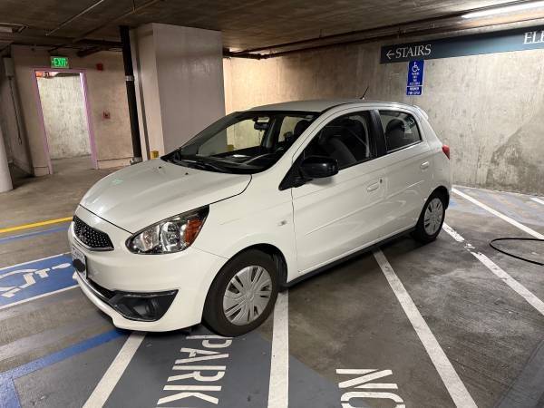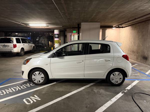 This 2019 Mitsubishi Mirage ES in white and in EXCELLENT condition is one of the most fuel-efficient non-hybrid, gasoline-powered cars on the market, delivering an estimated 36 city / 43 highway MPG. Single owner, relocated from Florida to California. The 2019 Mitsubishi Mirage ES is a practical and economical hatchback that comes standard with essential features like a 7-inch touchscreen display, a convenient rearview camera, and Bluetooth technology. This reliable and maneuverable city car also comes with spacious cargo capacity with 60/40 split-folding rear seats, steering wheel-mounted controls, and cruise control for comfortable commutes.