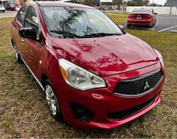 This 2020 Mitsubishi Mirage G4 ES that is red in color with AM/FM Radio, Traction Control, Cruise Control, Steering Wheel Mounted Controls, and more. This vehicle drives excellent and was well maintained. 2020 Mitsubishi Mirage G4 is a subcompact sedan with a small footprint and a small price tag. As one of the least expensive cars you can buy new today, the Mirage is bare-bones transportation at a competitive price. It also gets a great gas mileage with an EPA-estimated 37 mpg combined.