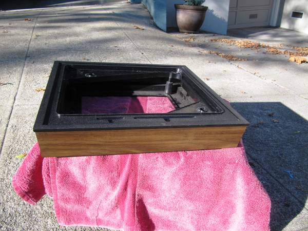 Molded black body with high gloss woodgrain finish with FISHER tag on front