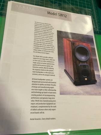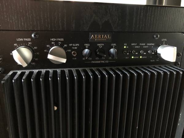 $6k msrp. Amplifier serviced in 2021. Aerial Acoustics SW12. 160 lbs including steel stand. With spike feet and cups for carpet or hardwood floor. The most extensive range of controls on any...