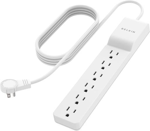 Belkin Surge Protector Power Strip - 6 AC Multiple Outlets - Flat Rotating Plug, 8ft Long Heavy-Duty Extension Cord for Home, Office, Travel, Computer Desktop & Charging Brick - White (720 Joules)