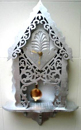 decorative table/wall battery operated clock in green wrought iron frame - leaf design; about 1' long $15 (matching candlestick and photo frame available)