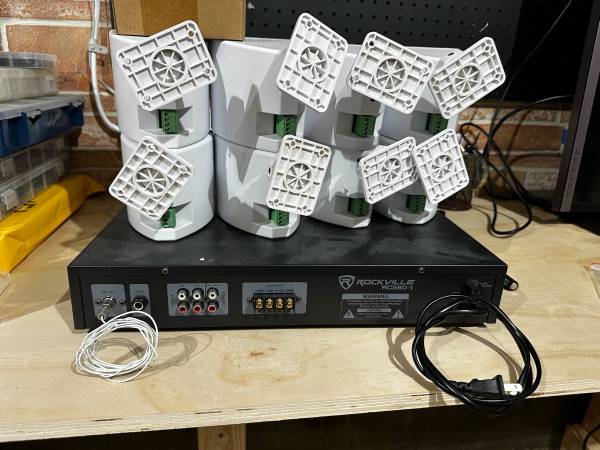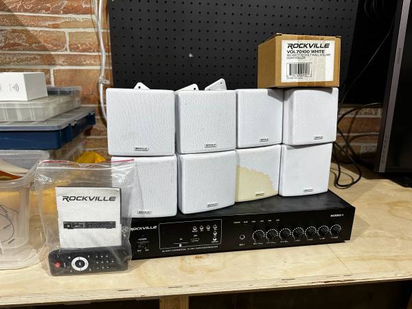 Selling a complete kit ready to use! - 8 rockville cube speakers with mounts - RCS80-1 amplifier with remote - in-line volume controller (new in box) It's in great condition and just one of the...