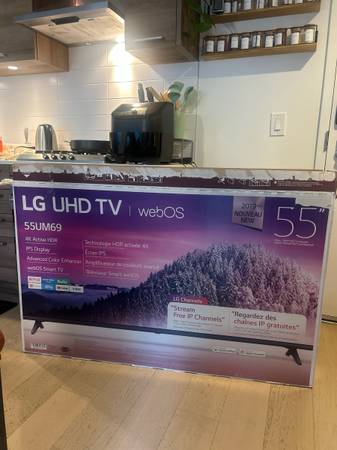 Selling my LG 55β 4K UHD TV (Model: 55UM6910PUC) in like-new condition. It was only used for a few days at a work convention, then packed back into its original box. Works perfectly and looks brand new. I plugged in today and made sure it still works.