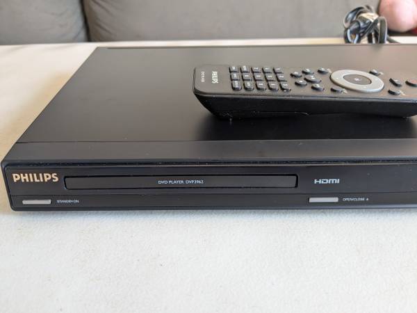 Hi. I'm selling my Philips DVP3962 Hdmi Progressive Scan DivX Ultra Certified DVD Player. In like new condition. Works flawlessly. The Philips DVP3962 HDMI Progressive Scan DVD player is a DVD player that can play virtually any disc and delivers a true-to-life picture quality. DivX Ultra Certified for enhanced playback of DivX-format videos. Supports a wide range of formats, including DVD-R/RW, CD, SVCD, VCD, DivX, MP3, WMA, and JPEG. Comes with original remote. Selling now for $70. Cash only