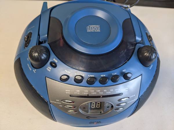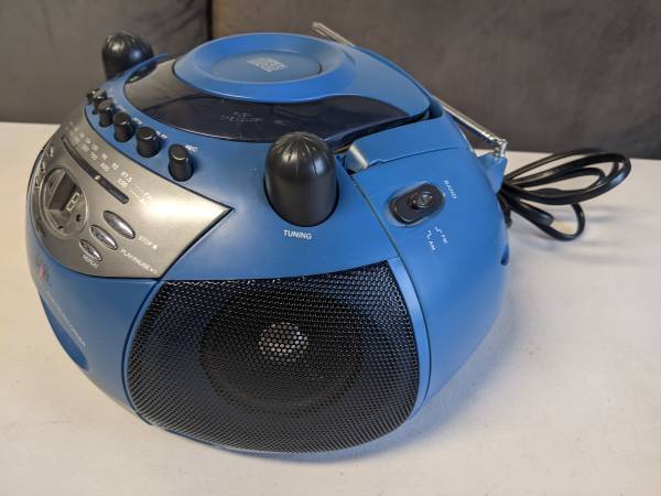 Hi. I'm selling my retro School Smart Portable Stereo CD Radio Cassette Tape Recorder Player bx-103a. In excellent to like new condition. Have 2 units available. Designed and built to withstand the rigors of classroom use while providing high quality sound. This practical stereo features a fully programmable CD player, cassette recorder, microphone input, AM / FM radio, and 2 full-range 5" speakers. Uses AC power or 8 "D" batteries, not included. Dimensions: 10" x 12" x 7"H. Selling now for $60. Cash only