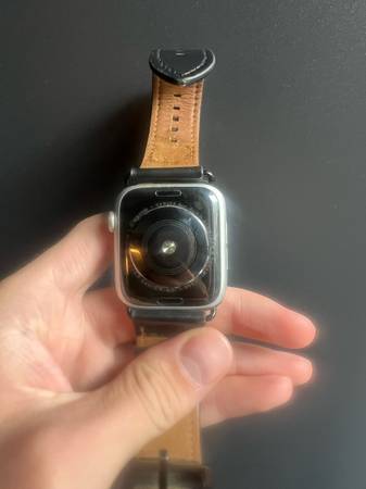 Selling my Apple Watch Series 5 (model A2093), 44mm size with 32GB storage. The screen is cracked but the watch still powers on and functions normally otherwise. Comes with a nice leather strap included.
