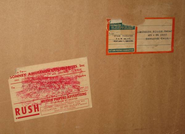Sonney Amusement Enterprises Inc was the distributor of the poster, as verified by the label on the back. It looks like the poster made it's way to at least 2 different theatres, The Star Theatre in Portland Oregon and The Moulen Rouge Theatre in Oakland California.