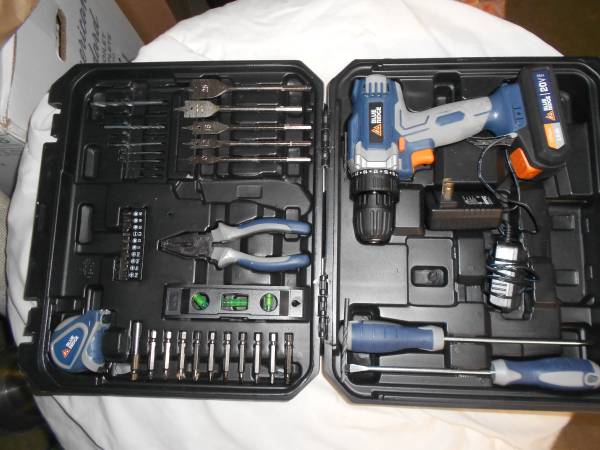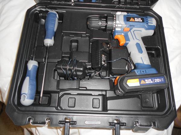 I HAVE A BLUE RIDGE DRILL SET FOR SALE .20V, 1.5AH LITHIUM BATTERY CHARGER, DRILL BITS, WOOD BITS, TAPE MEASURE, WRENCH & SCREW DRIVERS CASH ONLY $50 PIOCK UP IN S.F.