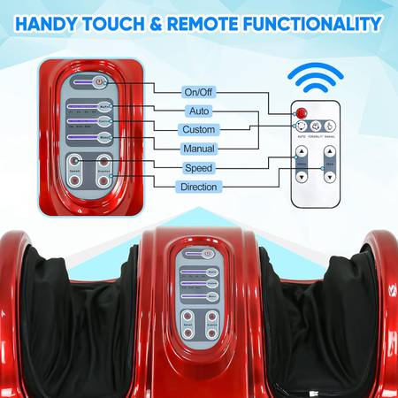 A foot massager can offer relief from ordinary aches and pains in your feet. Whether it's long sitting in the office or standing work for a long time, it's necessary to give your feet a massage to relax and relieve fatigue after a hard day. From Shiatsu Massage to alleviate soreness to deep massaging action that loosens tight muscles and tendons, foot massagers offer convenient, at-home care for men and women. Our foot massagers are portable and automated so all you need to do is turn one on and adjust the settings for comfort. Remote control, you can enjoy a massage more easily. Sitting on the chair, lying on the sofa, you can easily enjoy foot massage without bending over to set the mode.. This massager is pressed by the air bag. If your foot is big, there will be some pain during use.