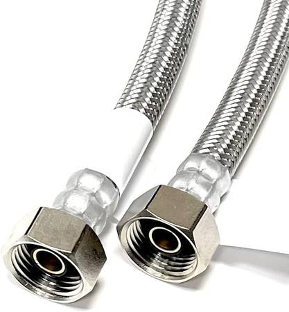 Faucet Water Supply Connector Line Braided Stainless Steel, Faucet Supply Line - 1/2" Female Iron Pipe (FIP) Thread for both ends (1/2" FIP x 1/2" FIP) (1, 16 inch)