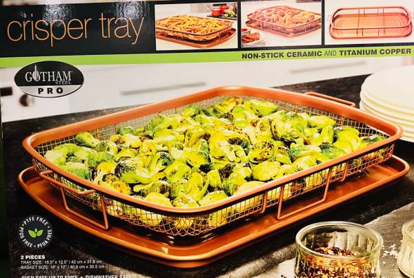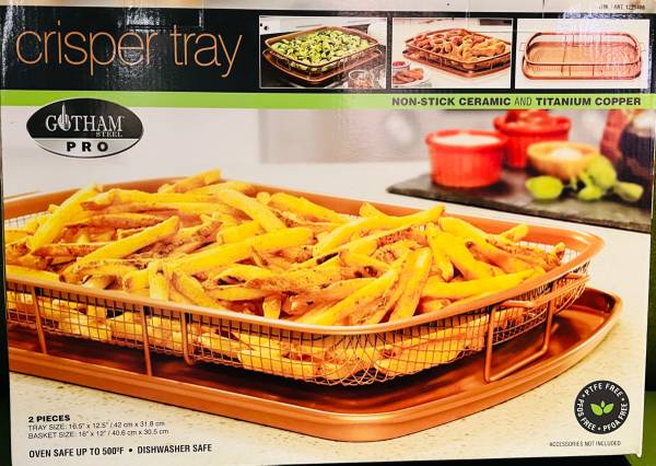 Brand New (Unused/Unopened) 2 Piece Nonstick Copper Crisper Tray and Basket Combo Great for baking, frying, roasting, crisping food Dishwasher and Oven Safe Non-Stick Air Fry with Less Oil, Evenly...