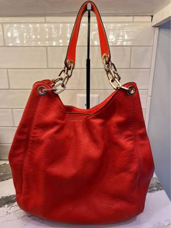 Hi. I'm selling my Michael Kors Fulton large Red leather shoulder handbag tote. In like new condition. Gently used. Absolutely in perfect condition. This leather handbag is stylish, colorful, and roomy. The leather is in superb quality and the design is just gorgeous and profound. Paid over $350 cash. Selling now for $200. Cash only