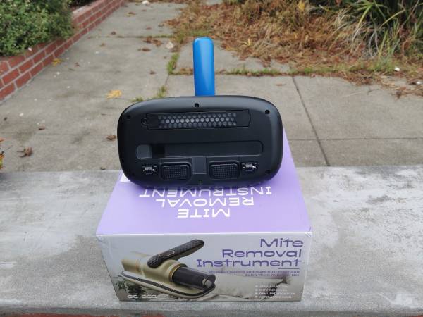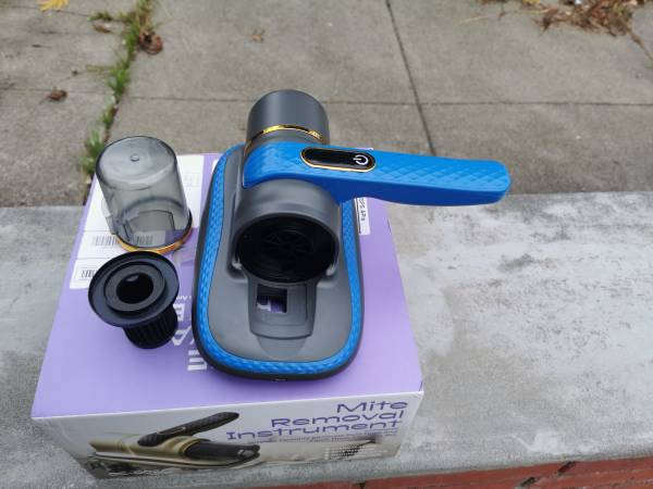 The vacuum is brand new! Purchased from outside the US cost over $60 plus tax + shipping. I bought this supposed to vacuum and get rid of fleas/dirt for my cat but it turned out the powerful suction plus it's loud noise scared the hell off my cat and she ran away every time I turned on the machine,never used the cleaner. The machine has the strong blue light kills all cherm/virus everytime it operates before sucking in the cup with a little HEPA sealed filter which traps the finest mites and dirt to 0.003 microns. This little vacuum machine is also the best number 1 cleaner and sanitation for your bed and your pillow. It can remove all the finest to the micron dirt/mite under your mattress/pillow that regular vacuums don't pick up. I've owned two and I saw the results when I used for my bed and my pillows. It's almost half the little cup of what looked like the finest grind Peets coffee with a few minutes press the machine on the thick mattress surface and the bed just finish vacuumed by my most powerful Dyson V-15 Gen 5. The machine is rechargeable and is compatible with all modern smart phone C chargers that I just share my smartphone charger with this infare vacuum cleaner.