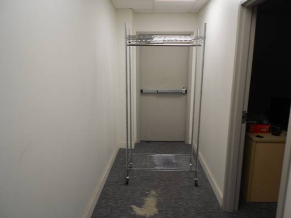 HELLO, I HAVE A MOBLIE CLOTHES RACK FOR SALE. IT HAS 1 SHELF. CHROME METAL RACK WITH WHEELS CASH ONLY PICK UP IN S.F.
