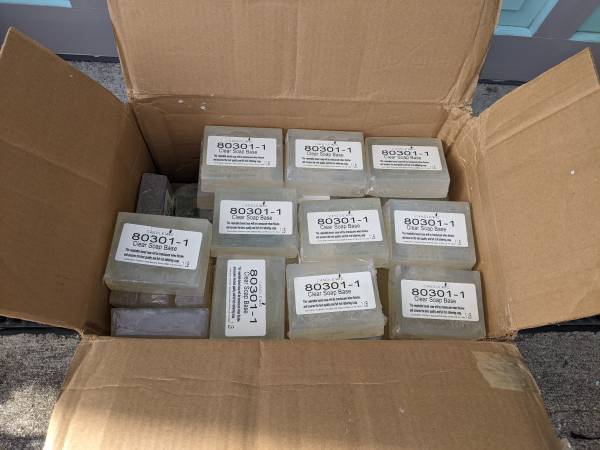 Hi. I'm selling my Candle wic 1 pound clear soap base. In new condition. Never opened. Have about 24 units available. This clear melt and pour soap base is perfect for creating embeds for your cold process soap loaves! Simply melt and mix in your colorant and fragrance without having to worry if your soaps will bead or sweat in high humidity. this base is detergent free and made using the saponification process. It contains no SLS, SLSA, or other questionable additives. Ingredients: Coconut Oil, Palm Oil, Safflower Oil, Glycerine (kosher, of vegetable origin), Purified Water, Sodium Hydroxide (saponifying agent), Sorbitol (moisturizer), Propylene Glycol, Sorbitan oleate (emulsifier), Oat protein (conditioner). Selling now for $5 each. Cash only