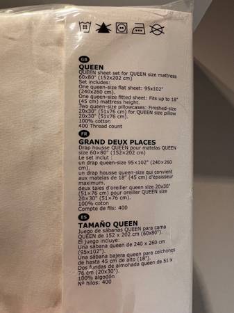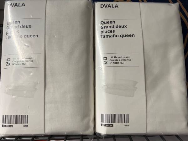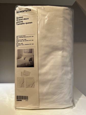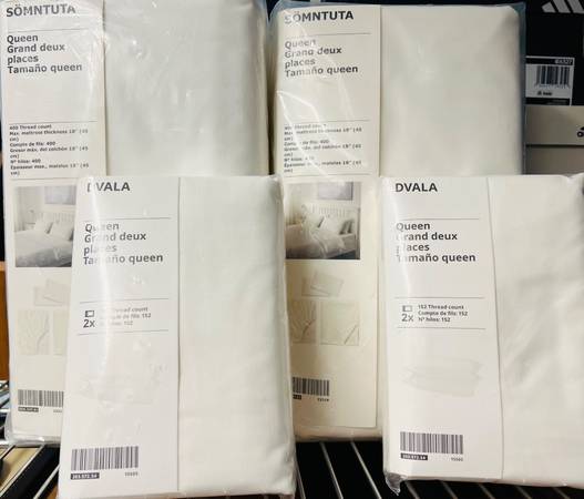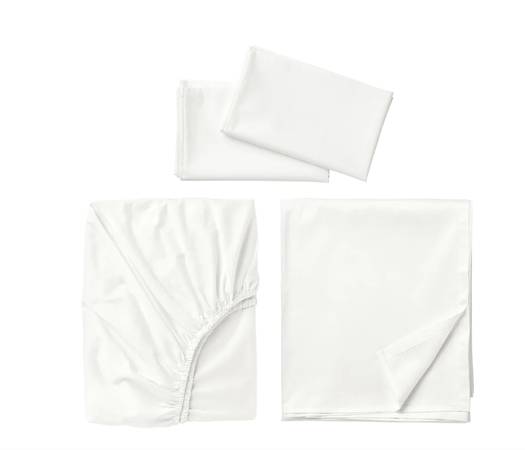 2 Sets of IKEA SOMNTUTA Sheet Set (WHITE QUEEN) : Each set has 2 pillowcases, 1 Fitted Sheet, 1 Flat Sheet (4 items) X 2 Sets