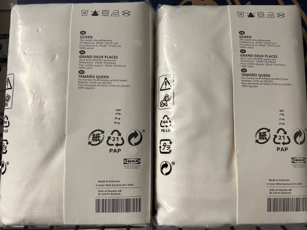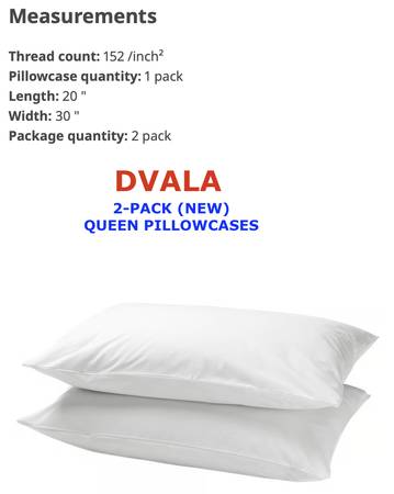 2 Sets of IKEA DVALA Pillowcases (WHITE QUEEN) : Each set has 2 pillowcases (2 items)X 2 Sets