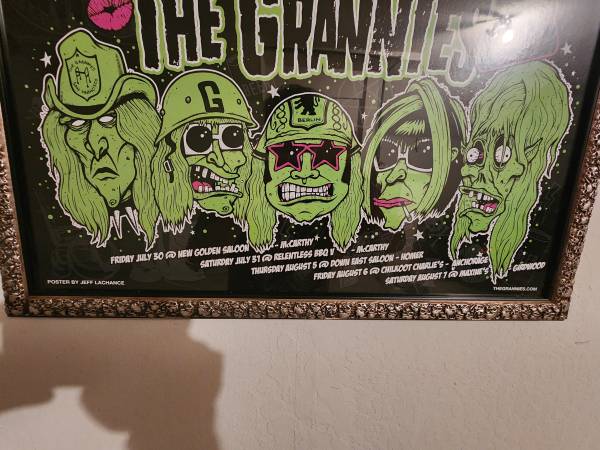 For Sale: The Grannies San Francisco Punk Rock Group Concert Poster in Alaska W/ Skull Frame. RARE! A really cool punk rock group The Grannies from San Francisco rock poster of a concert in Alaska....