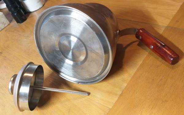 Sulives brand name Trendy design Stainless steel inside Pearled copper colored outside Wooden handle Not used I am downsizing Yours for $30