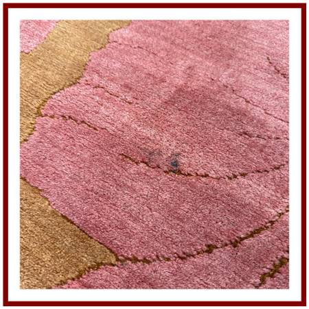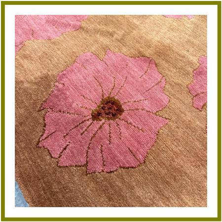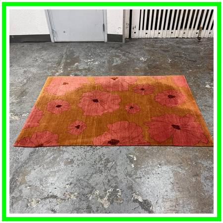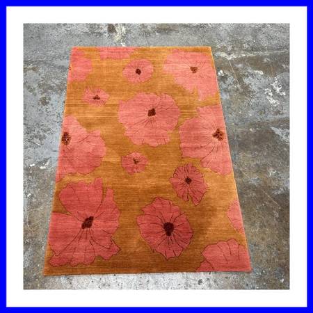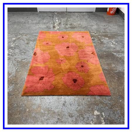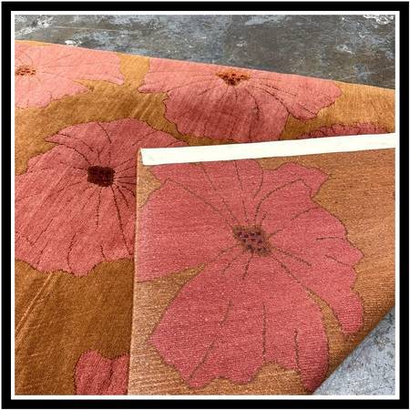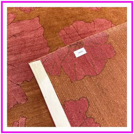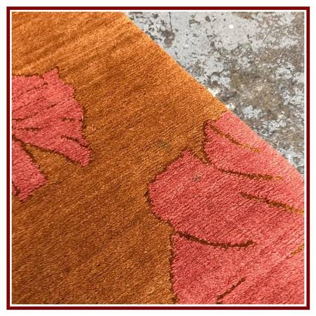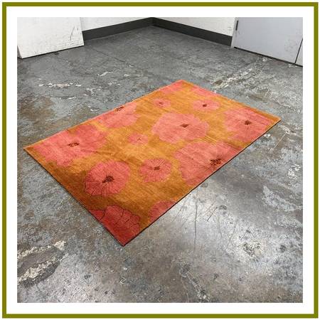 Design Plus Gallery presents a 4ft X 6ft 2in Custom Floral Wool Area Rug. A versatile size perfect for living rooms, bedrooms, or entryways. The rich, burnt orange background provides a warm and inviting foundation, while an array of burn red floral motifs of varying sizes offers a bold, eyecatching contrast. The floral pattern lends the rug an elegant, artistic quality that blends well with both contemporary and classic dcor styles. Crafted from highquality wool, this rug is durable and soft underfoot. The rug is in good overall condition, but would benefit from a professional cleaning to fully refresh its appearance.